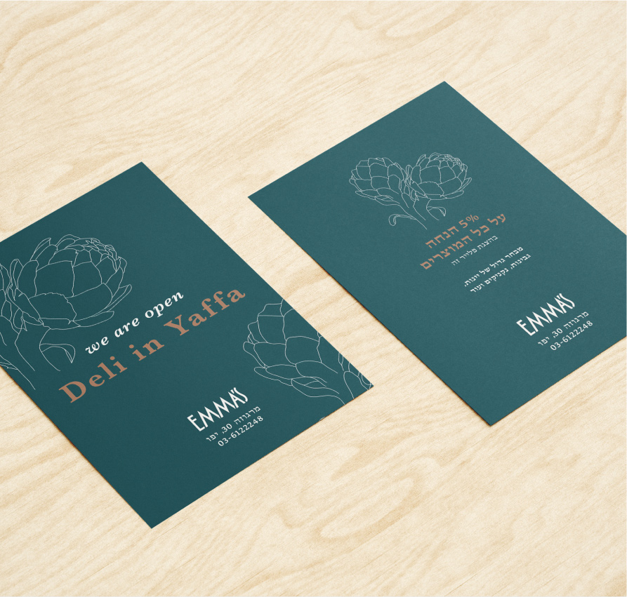 Located on one of the most popular and recently renovated streets in Jaffa, EMMA’s is a local deli that offers a unique atmosphere. It blends high-end international culinary brands with authentic local cuisine, creating a delightful fusion of flavors. The project includes a comprehensive branding package, featuring a complete visual communication strategy paired with exclusive interior design to ensure a cohesive and memorable identity.